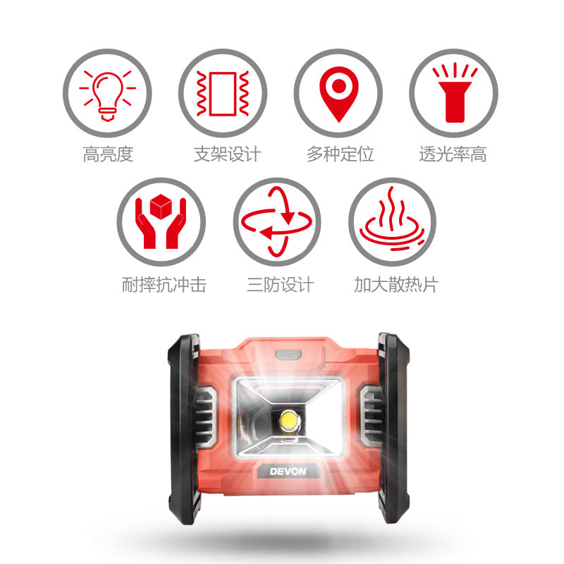 大有DEVON 工作太陽燈(鋰20V)(2000流明)(淨機) 5532-LI-20