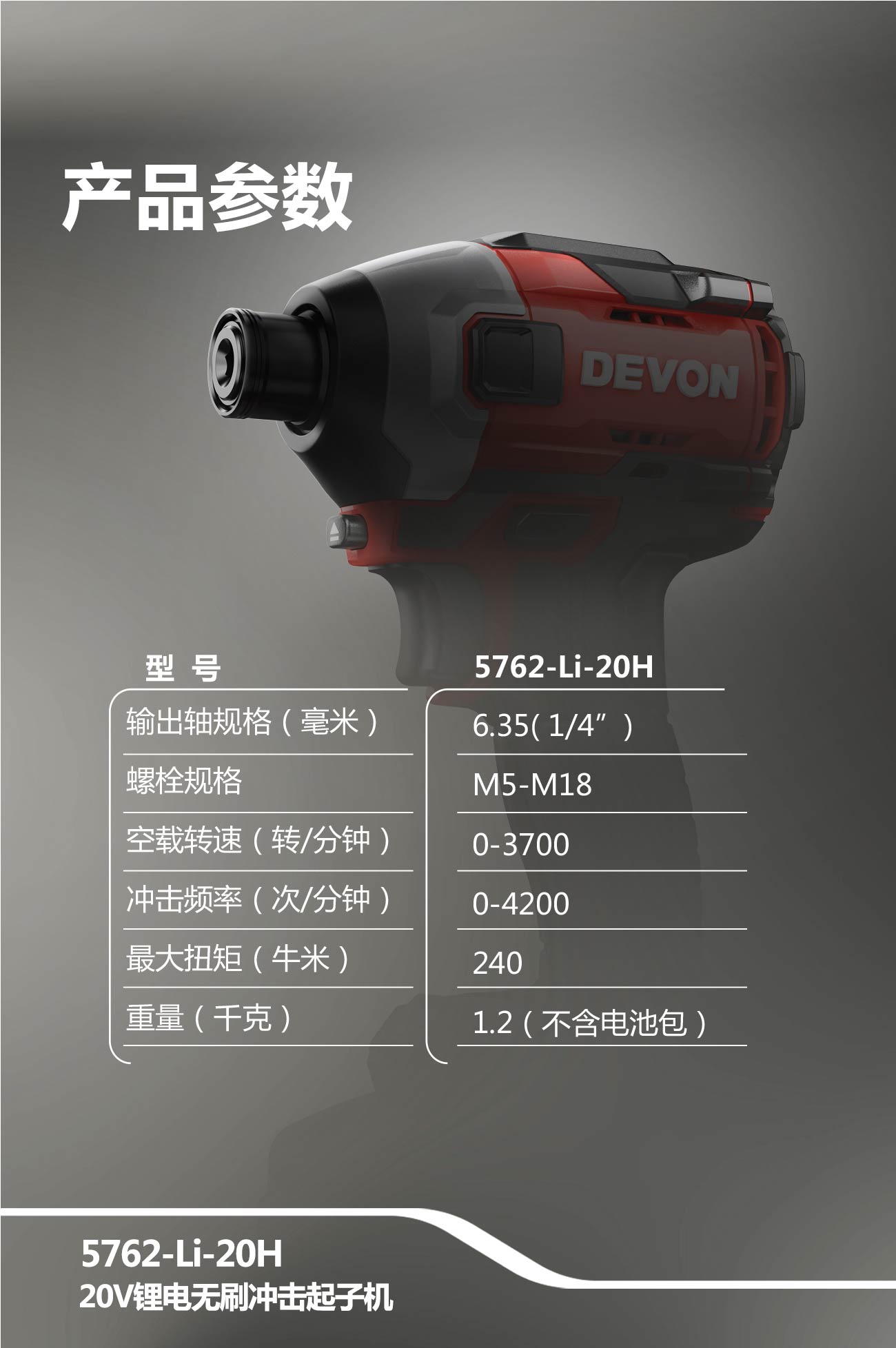 大有DEVON 充電衝擊批(240N.m)(鋰20V)(無刷)(淨機) 5762-Li-20H【淨機】