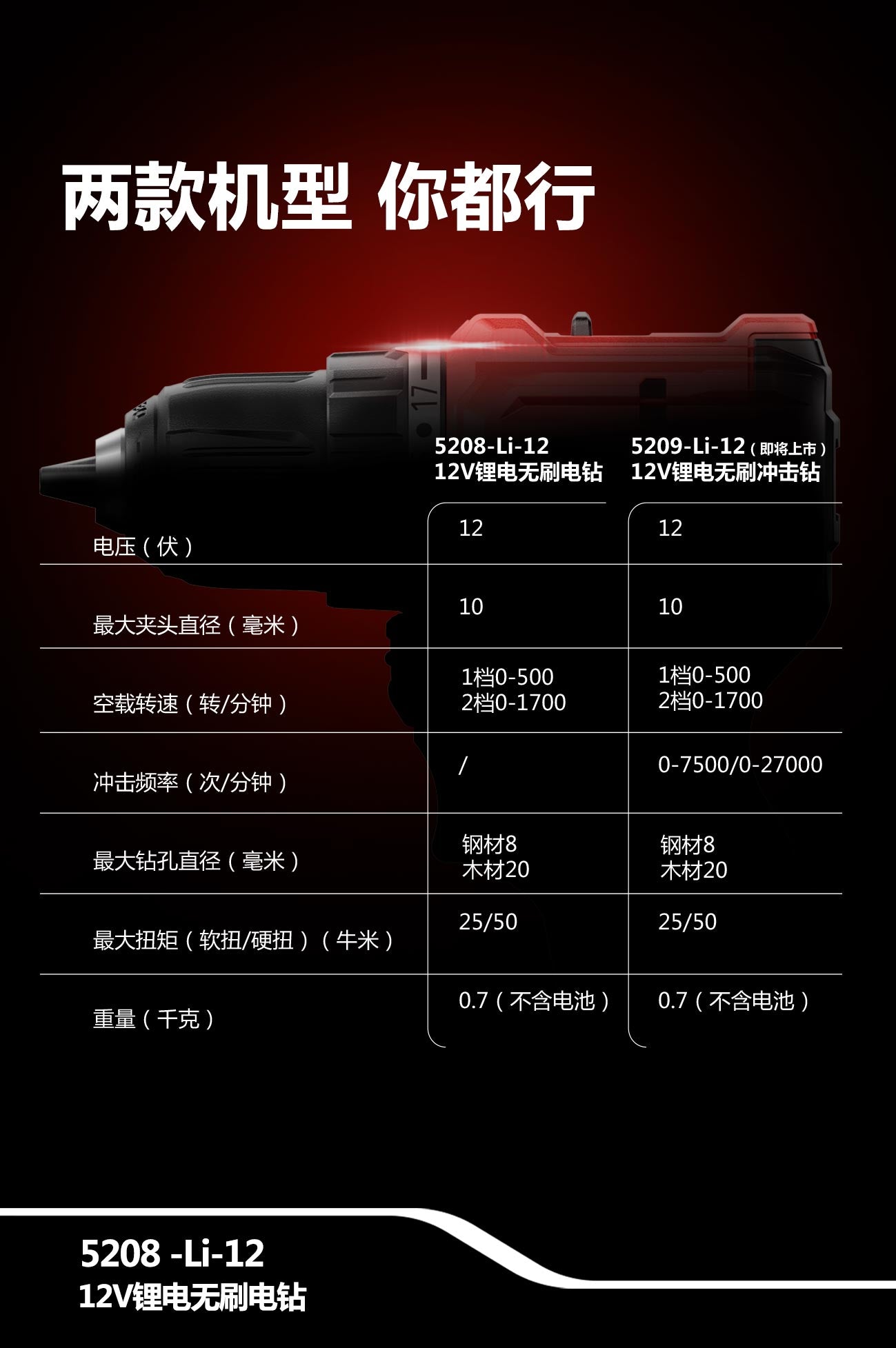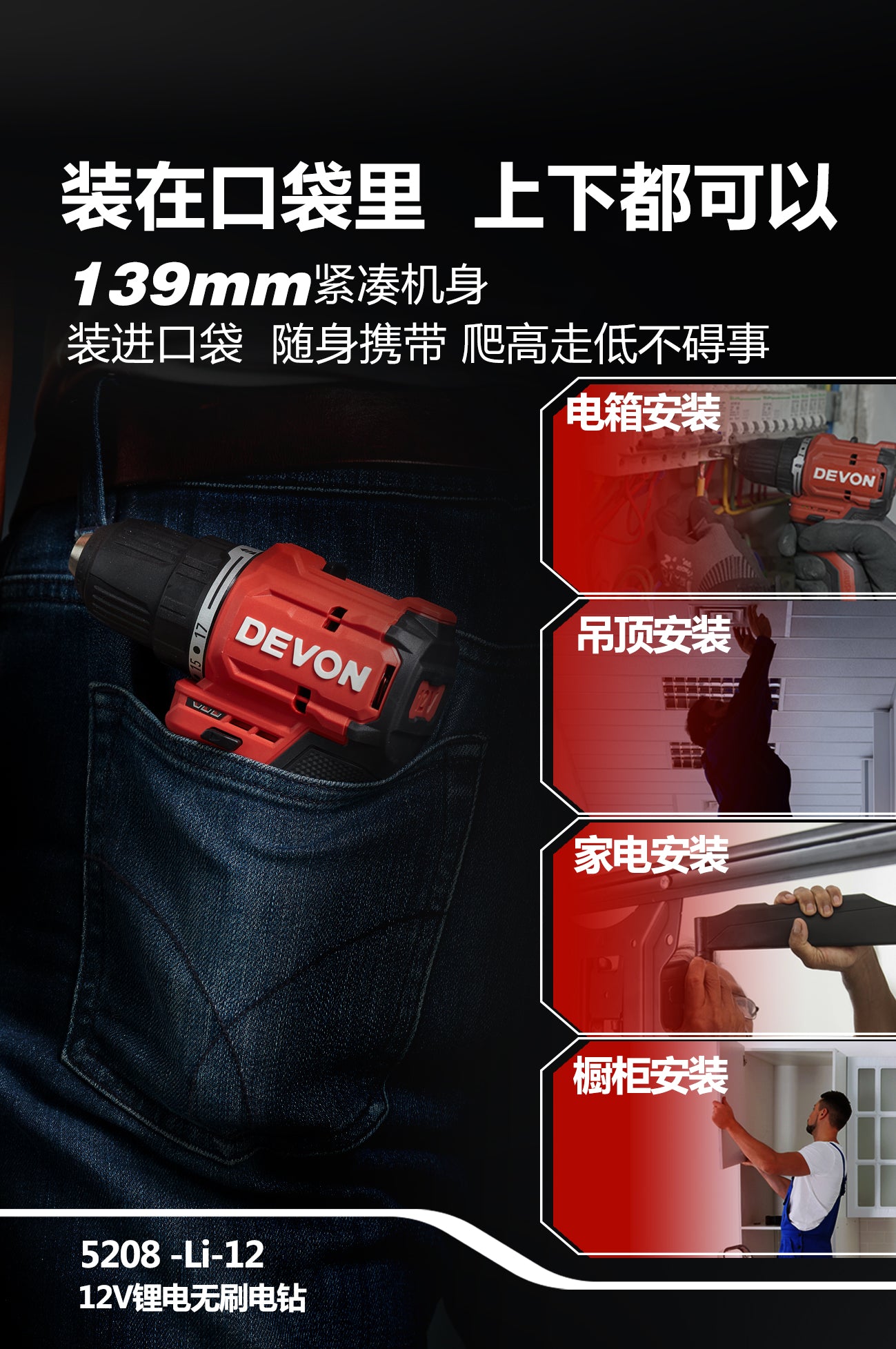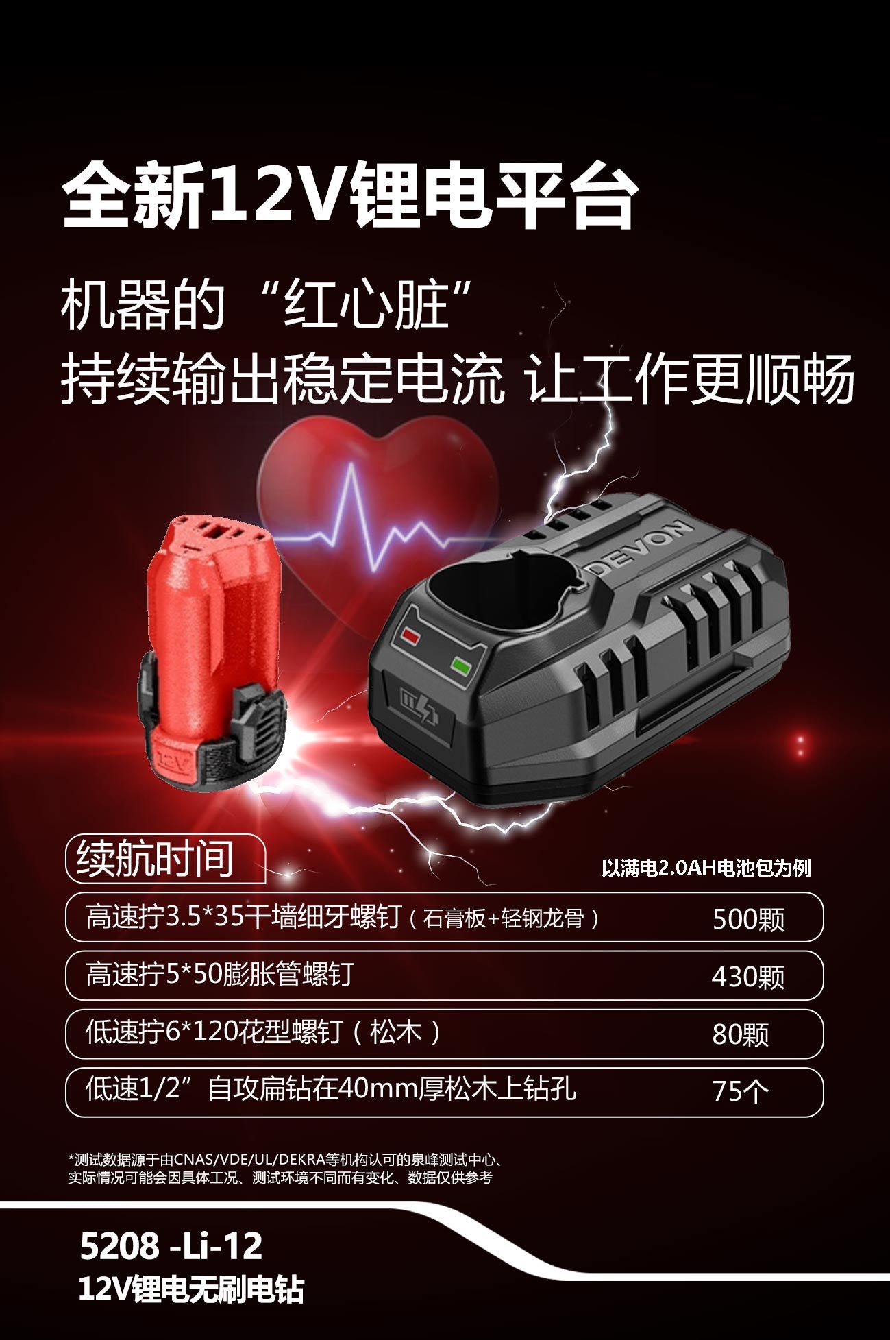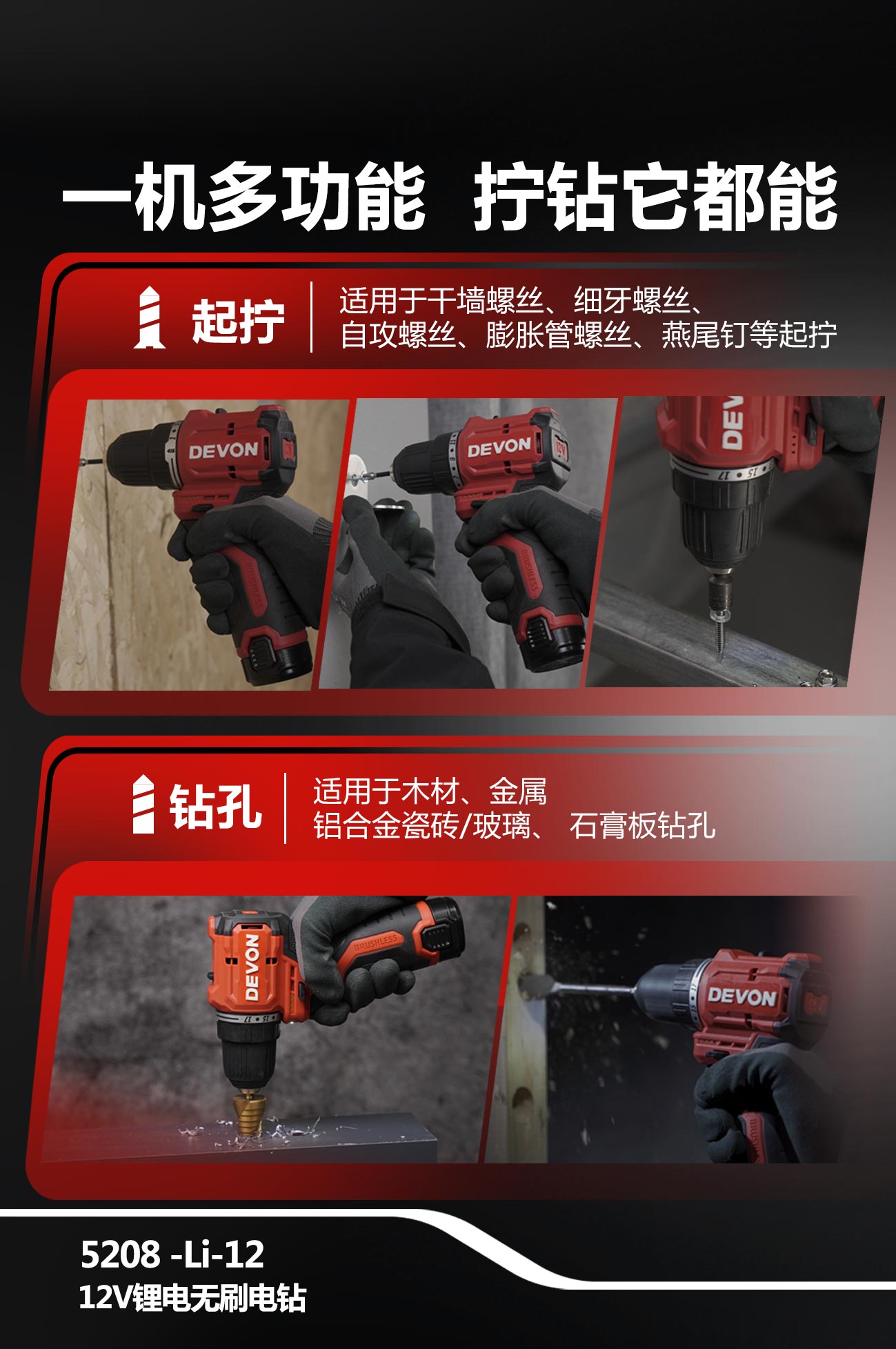大有DEVON 起子衝擊電鑽(鋰12V)(2.0Ahx2)(無刷) 5209-Li-12