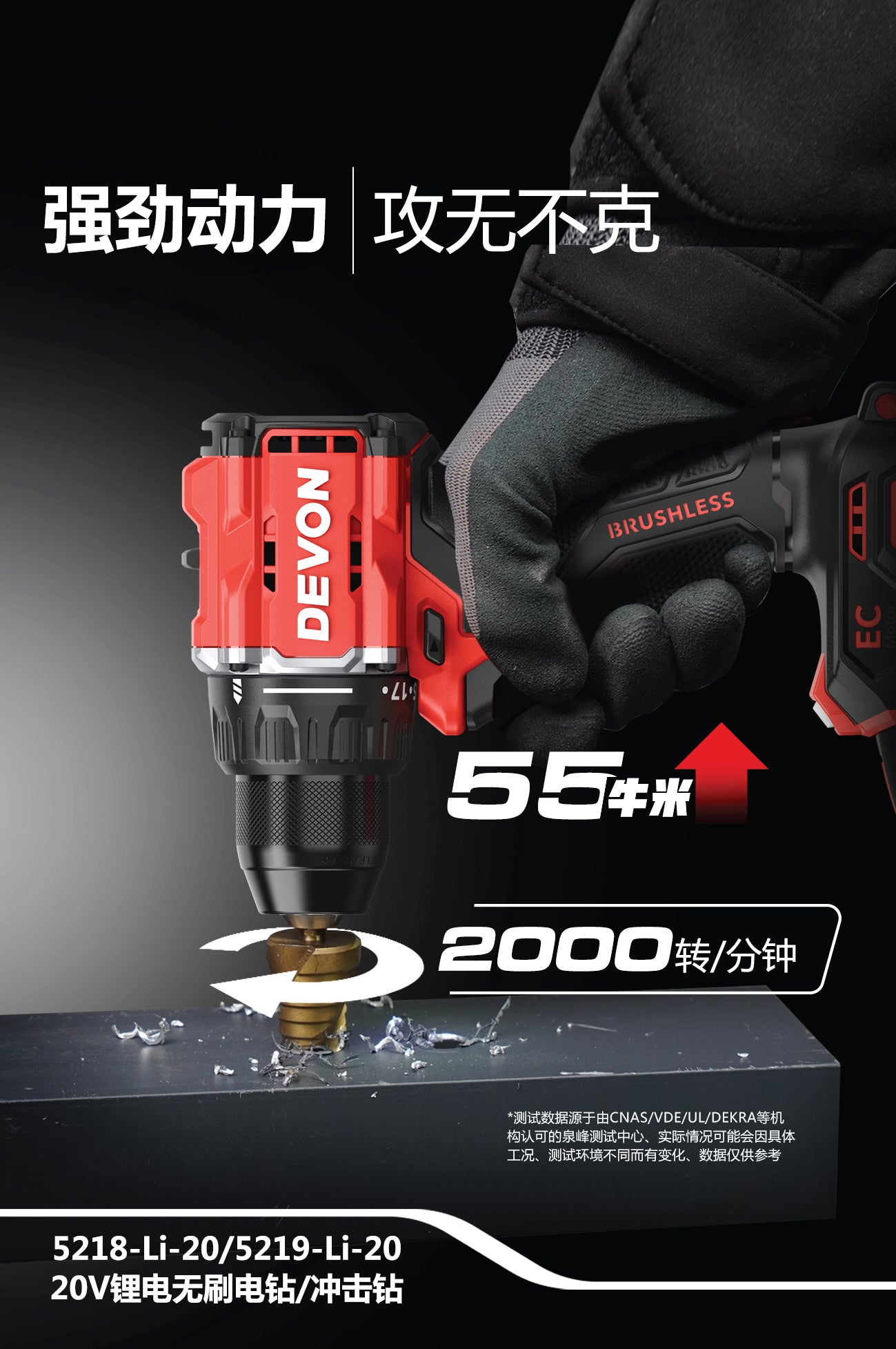 大有DEVON 輕量起子衝擊電鑽(55N.m)(鋰20V)(無刷) 5218-Li-20/ 5219-Li-20