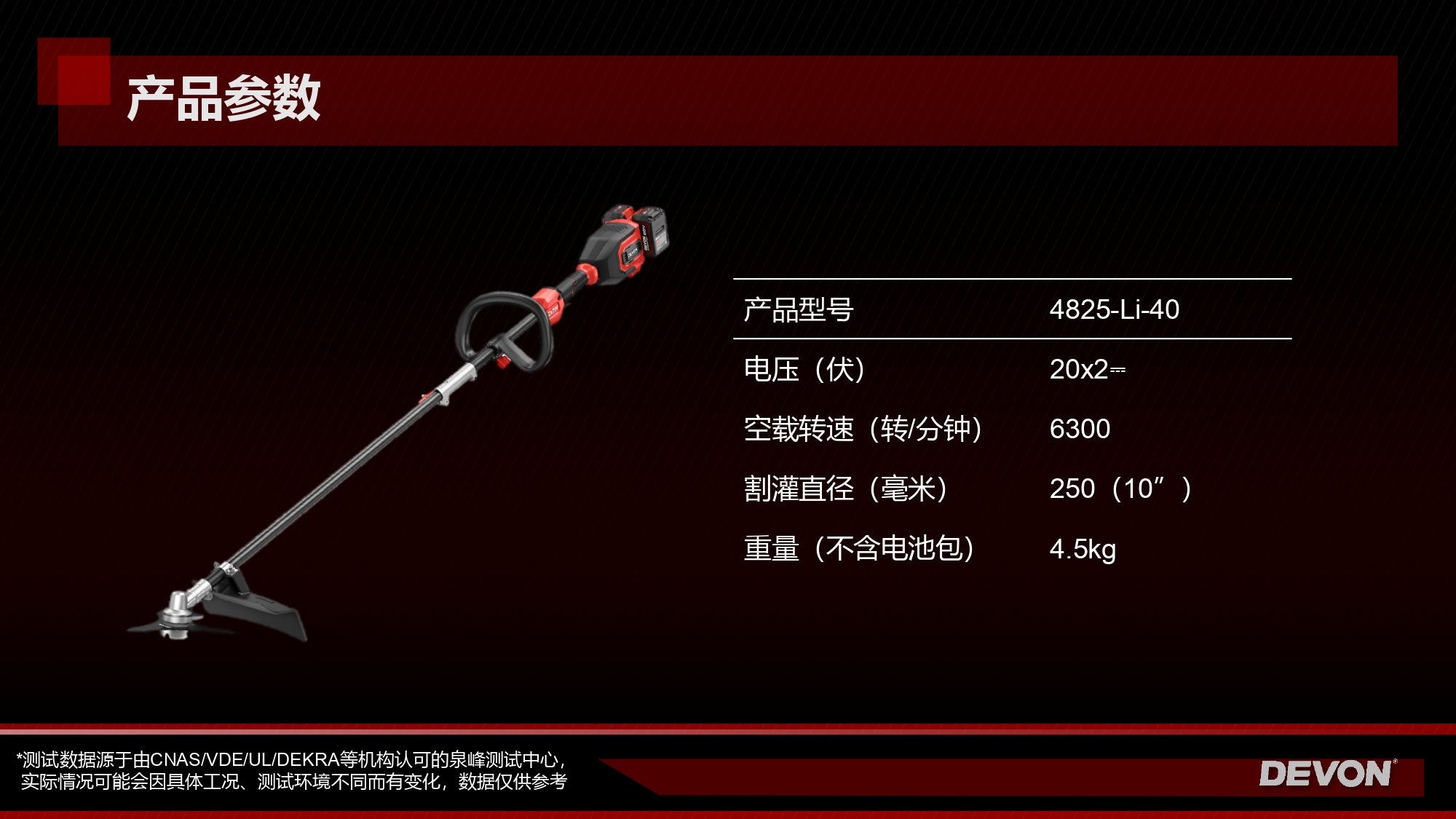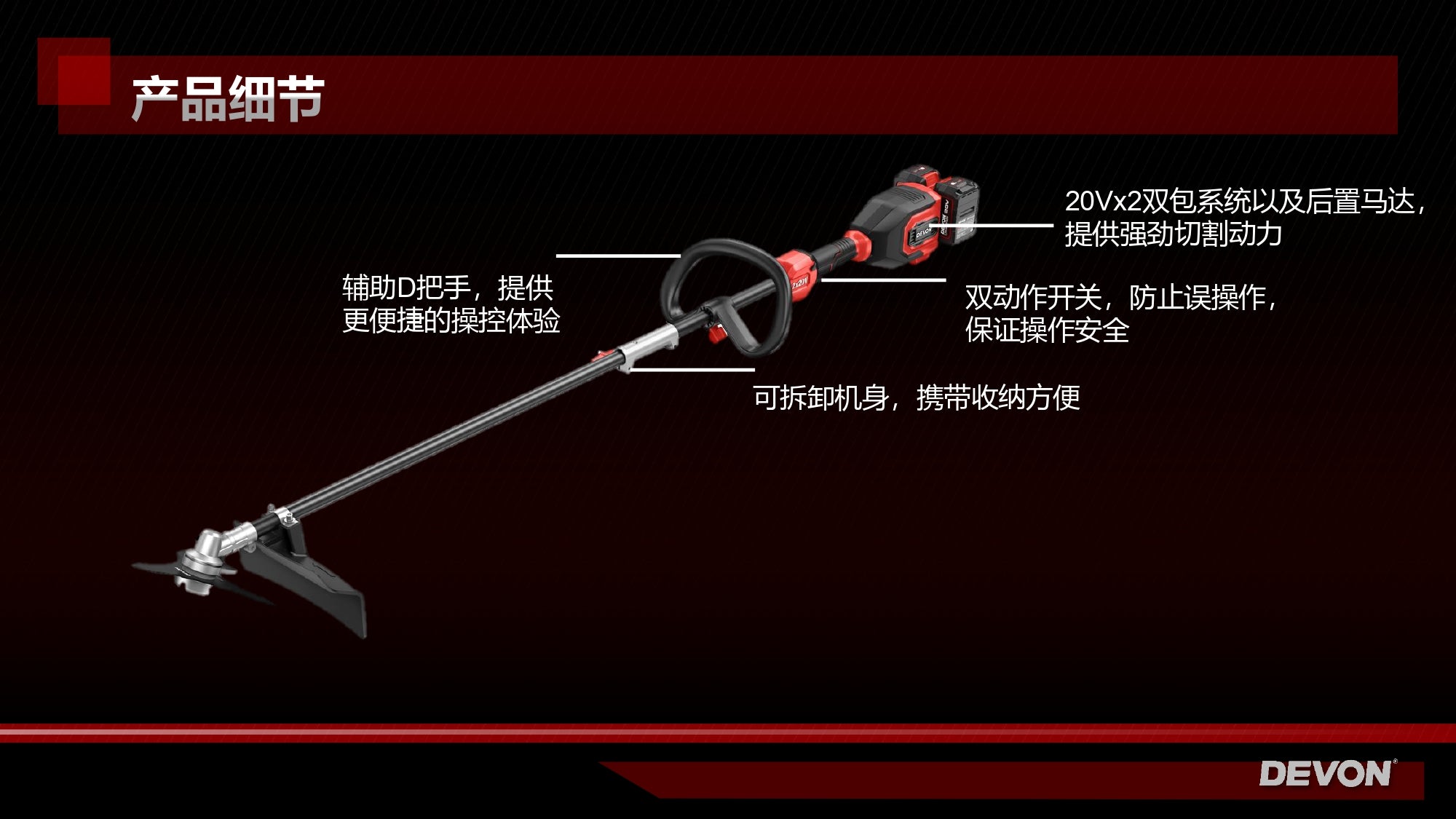 大有DEVON 10"割灌機(鋰20Vx2)(無刷) 4825-Li-40 (淨機)